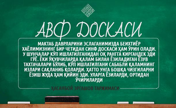 Мактаб даврларини эслаганимизда беихтиёр хаёлимизнинг бир четидан синф доскаси ҳам ўрин олади. У шунчалар кўп ишлатилганидан оқ рангга киргандек эди гўё. Ёки давоми...
