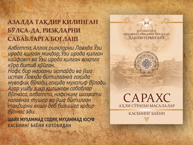 Ризқ инсон ҳаётидаги ҳассос мавзулардан ҳисобланади. Аллоҳ субҳанаҳу ва таоло инсонни яратиб, унинг ҳаёт кечириш сабабларини ҳам муҳайё қилиб қўйди, ер ва ундаги давоми...