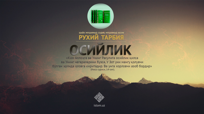 Банда эҳтиёт бўлиши лозим бўлган қалб хасталикларининг яна бири осийликдир..Осийлик,, .исён,, .маъсият, сўзлари бир ўзакдан бўлиб, луғатда .тоатдан чиқиш, деган давоми...