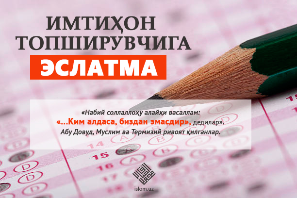 Савол Ассалому алайкум Ҳурматли устозлар, мeн 3 хафтадан кeйин имтиҳон топшираман. Бу ҳаётимдаги энг муҳим жараёнлардан бири. Шу сабабли динимизда имтиҳондан олдин давоми...