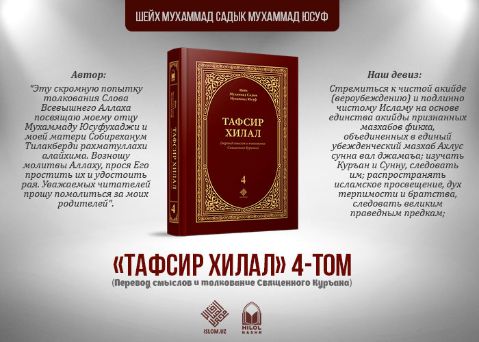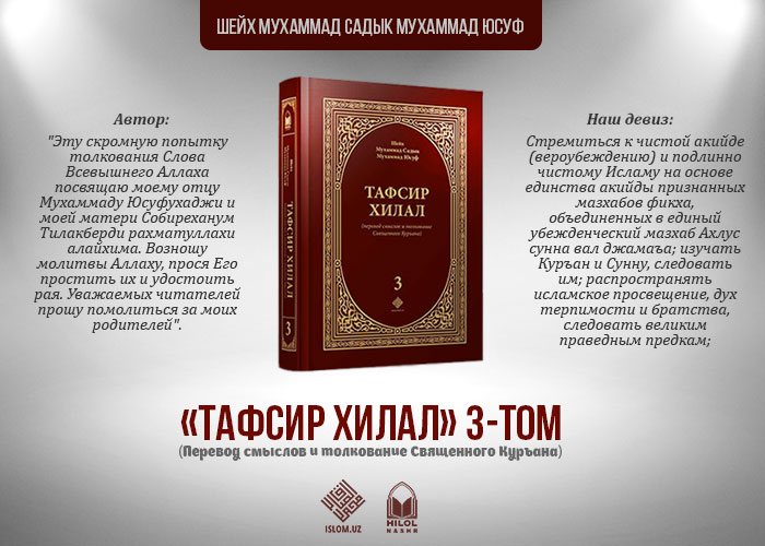 .Тафсир Хилал, фундаментальный труд досточтимого шейха Мухаммад Садыка Мухаммад Юсуфа, всемирно известного исламского ученого и общественного деятеля. Тафсир давоми...