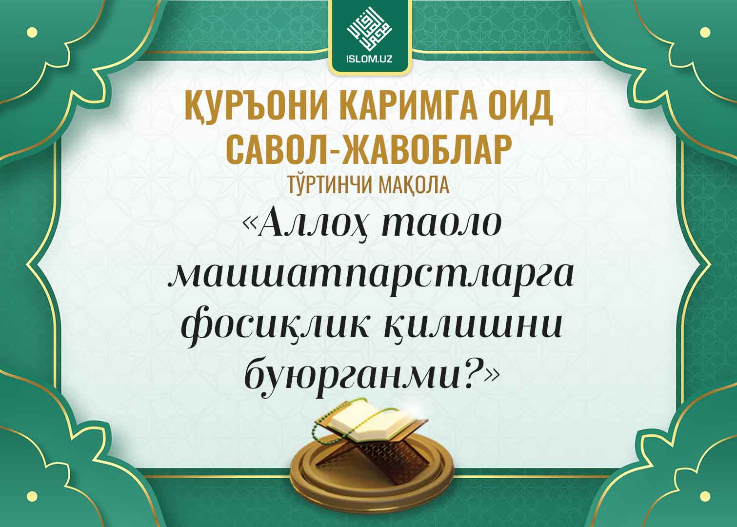 СаволАссалому алайкум Саволим бироз ғалати эшитилиши мумкин, олдиндан узр сўрайман. Мен анчадан бери оператормонтажчи бўлиб ишлайман. Шунинг учун ҳам баъзи давоми...